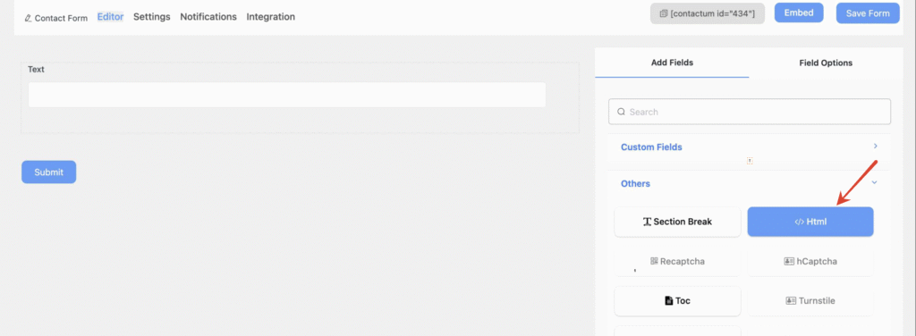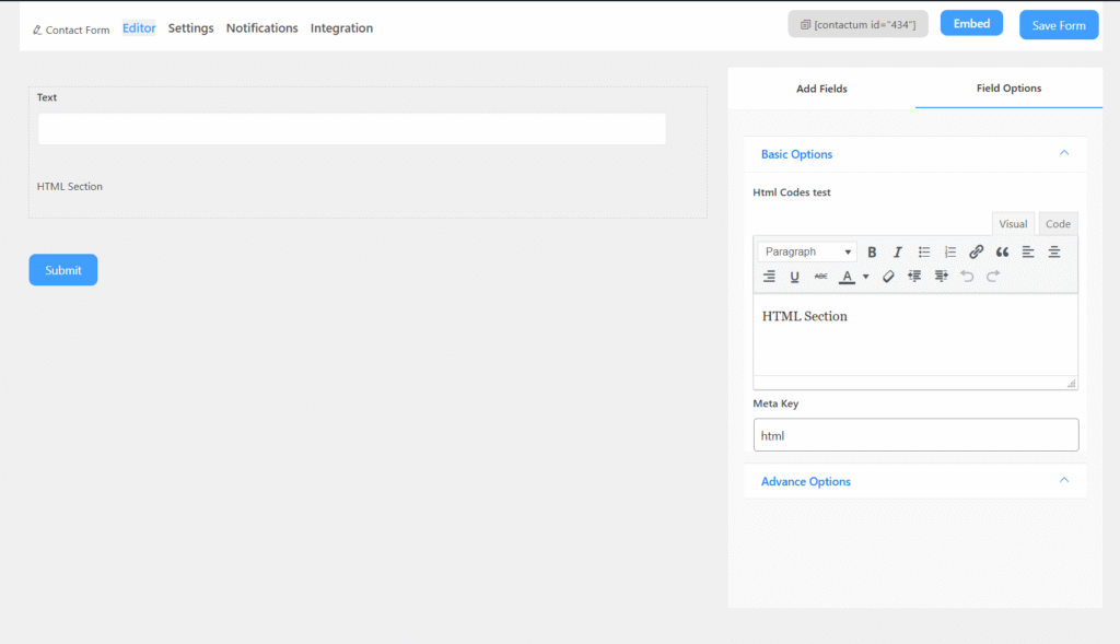 Custom HTML in Contactum