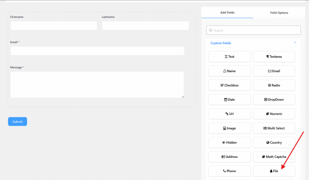- Allowed Files: This option lets you select the type of files that you would allow any user to upload with the form.