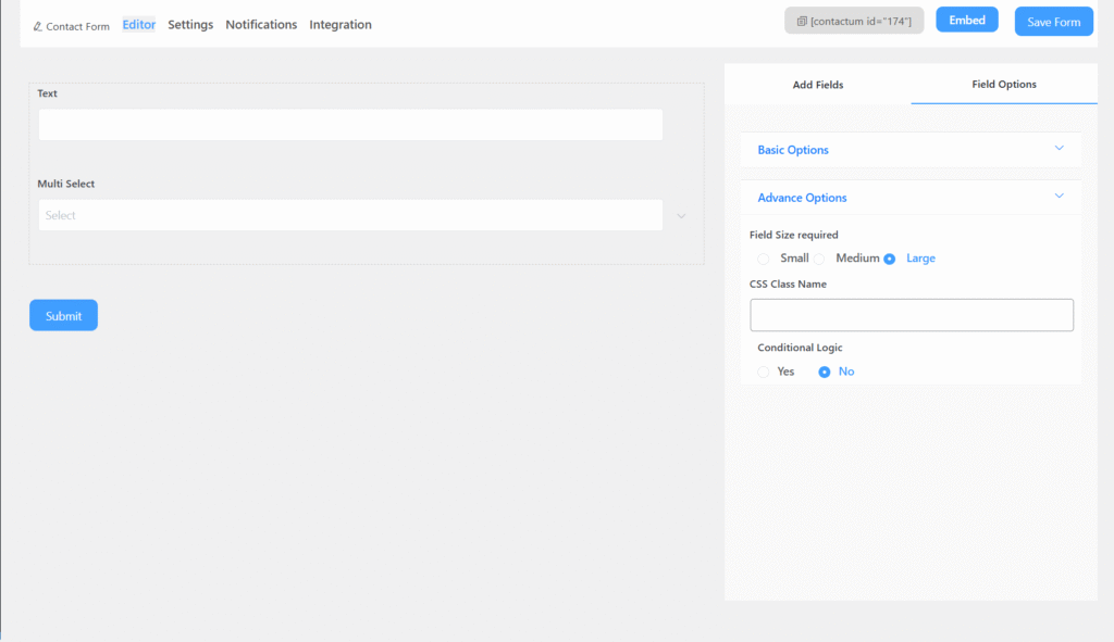 - CSS Class Name: Allows you to assign a custom CSS class for styling the field.