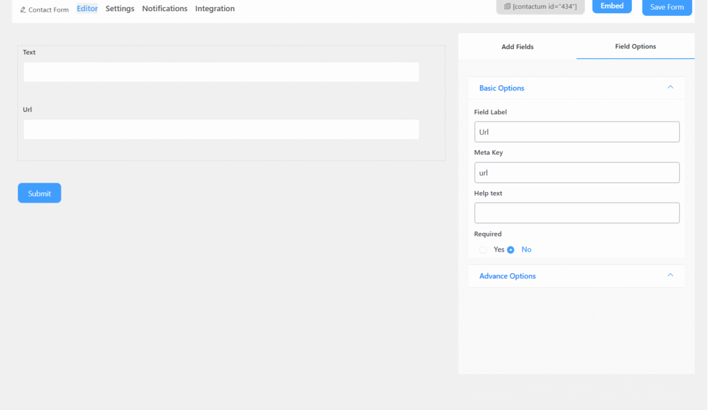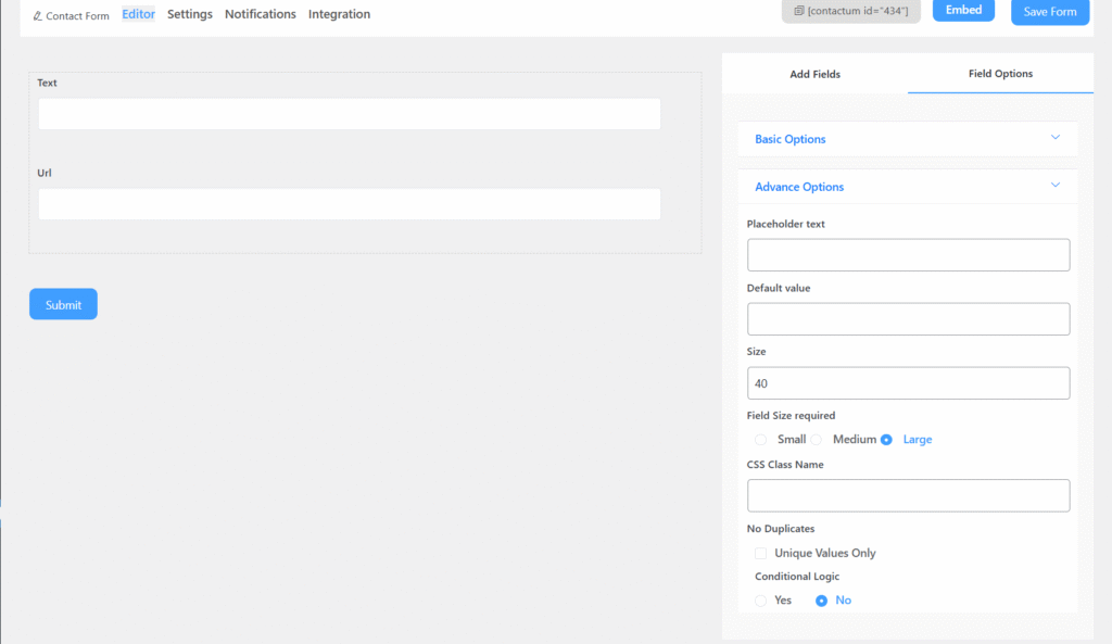 • CSS Class Name: Allows you to assign a custom CSS class for styling the field.